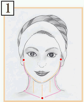 1.首は下から上へ、次に耳の下へ軽くひきあげるようにし、鎖骨へとマッサージします。